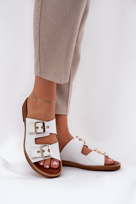 Kožené Ploché Sandále S Prackami Biele Zazoo 3020