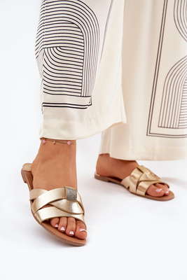 Ploché Dámske Sandały S Prepletenými Pásikmi Zlate Selaenor