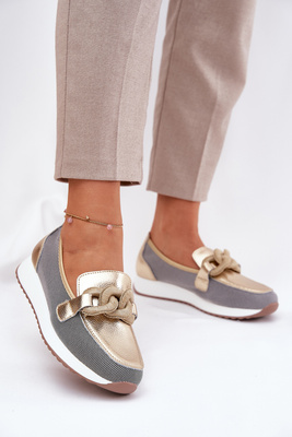 Kožené Dámske Mokasíny S Ozdobou D&A LR51-966 Zlaté