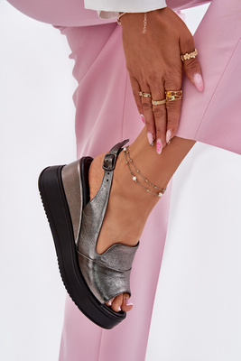 Dámske Kožené Sandále Na Klíne Artiker 54C0402 Grafitové