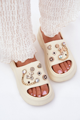 Dámske Penové Sandały So Zlatými Klipmi Svetlo Béžové Hortiana