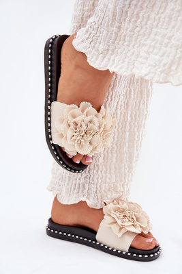 Dámske Šľapky S Textilnými Kvetmi Béžové Elachase