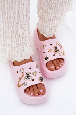 Dámske Penové Šľapky Na Masívnej Platforme So Zlatými Dekoráciami Rúžové Ivoriel