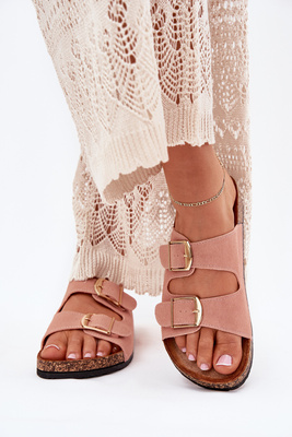 Dámske sandále na korkovej platforme so zlatými prackami ružové Lisavionea