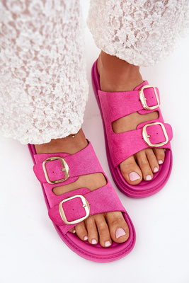 Dámske sandále na platforme so zlatými sponami fuchsie Verena