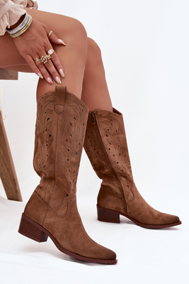 Kovbojské čižmy s perforovaným vzorom na nízkom podpätku khaki Selirae