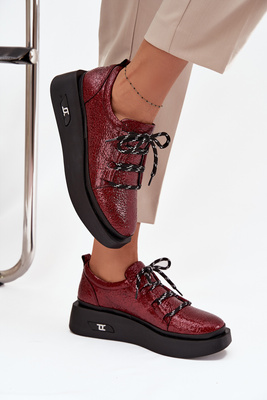 Kožené Lakyované Dámske Mokasíny Na Platforme Artiker 57C2046 Bordó