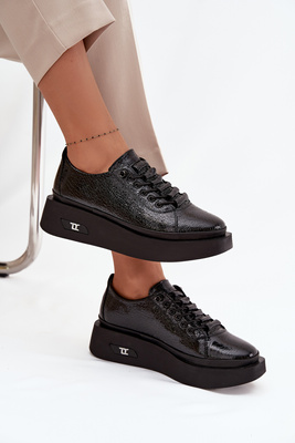 Kožené lakované dámske poltopánky na platforme Artiker 57C2041 Čierne