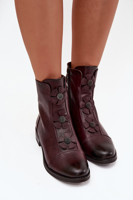Zateplené dámske členkové čižmy na plochej podrážke s dekoratívnymi kvetmi Bordeaux Pravienne