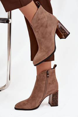 Kožené semišové dámske čižmy na opätku s podšívkou béžové Zivella