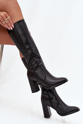 Dámske čižmy na opätku z eko kože zateplené čierne Lyvella