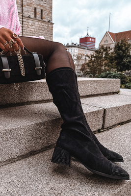 Dámske čižmy s ozdobou na bloku ekologická semiš Čierne Ivanna