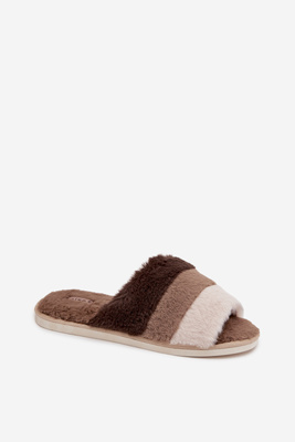 Kožušinové Dámske Papuče S Prúžkami Hnedé Tahlisse