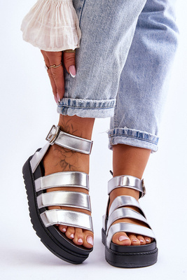 Ploché sandále S. Barski KV-5541-35 Biele a strieborné