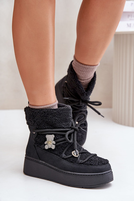 Zateplené Čižmy Na Plochom Opätku S Dekoratívnym Pásom Čierne Calzina