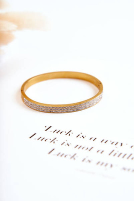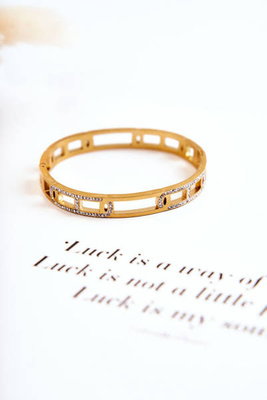 Dámsky oceľový náramok s dekoratívnymi zlatými zirkónmi