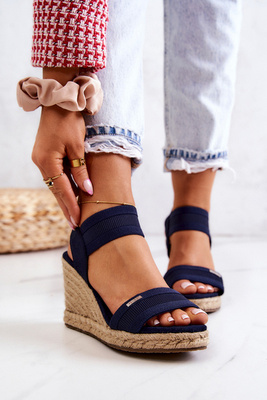 Dámske sandále na klinách veľká hviezda JJ274938 NAVY BLUE