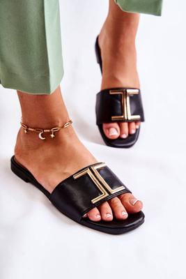 Dámske kožené papuče s dekoratívnou reťazou čierna maraia