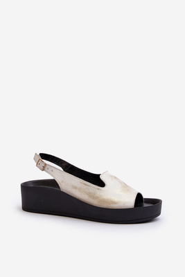 Dámske Kožené Sandále na Hrubej Podrážke Zlatý Potieraný Zazoo 2893