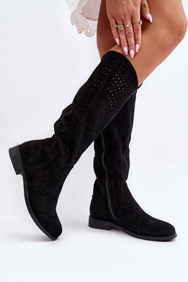 S.Barski HY66-150 Čierne Vyrezávané Topánky s Plochým Pätkom