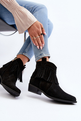 Zazoo 3430 Čierne semišové dámske topánky s franjami