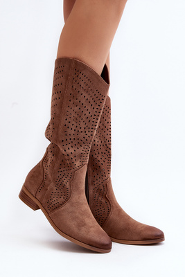 Hnedé čipkované topánky po polovicu lýtka Kleorelia