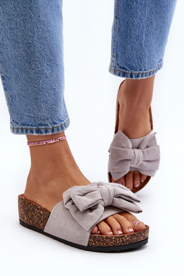Dámske papuče na korkovej platforme s mašľou sivé Tarena