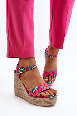 Vzorované sandále na klinčeku z prútia Fuksia Anihazra