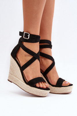 Sandále S Klinovou Pätkou A Pletením Čierne Salthe