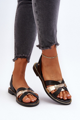 Dámske čierne kožené sandále Zazoo 40382