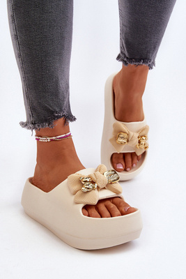 Dámske penové žabky s mašľou béžové Salessa