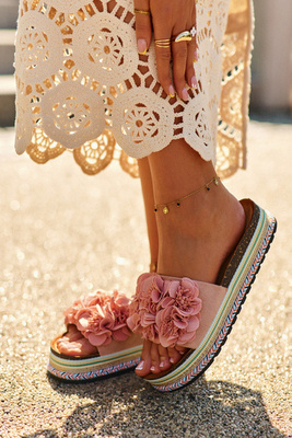 Dámske platformové sandále zdobené kvetmi ružové Nodina