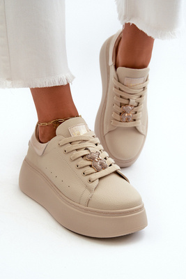 Dámske kožené tenisky na platforme s mašľou béžové Vinceza 66641