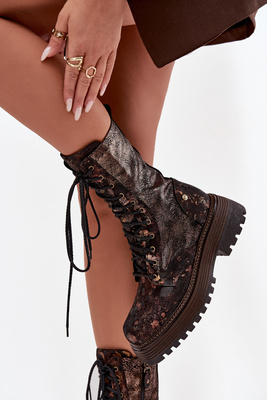 Dámske Kožené Workery Topánky Maciejka 06203-32 Hnedo Zlato