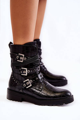 Izolované kožené topánky s dekoráciou čierne Blandi