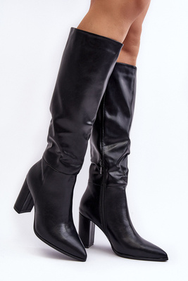 Vysoké dámske topánky na kolene na stĺpiku Čierny jeine