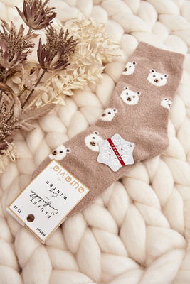 Dámske teplé bodky ponožky s béžovým medvedíkom