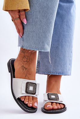 Dámske sandále s dekoráciou S. Barski KV-2775-49 Silver