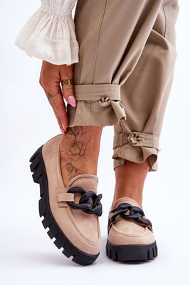 Klasické topánky mokasírov s lemovanou béžou lonisa