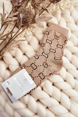 Dámske teplé bodky ponožky s béžovým medvedíkom