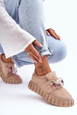 Dámske mokasáre na platforme s kameňmi Beige Elonore