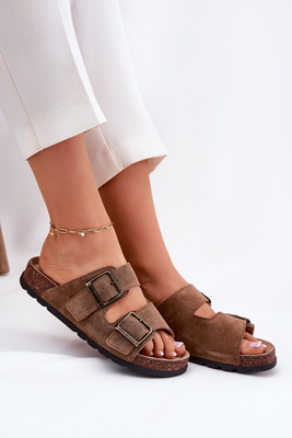 Dámske Semišové Sandále S Prackami Panto Fino RR267024 Hnedé