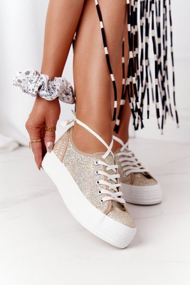 Kožené klinové tenisky s sieťou S. Barski Złote