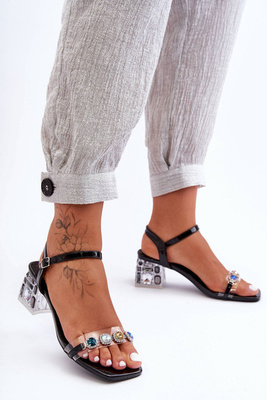 +1Sandále na päte s štvorcovým špičkou S.Barski C420-11 čierna