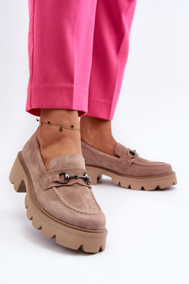 Dámske lesklé mokasíny s plochou podrážkou béžové Ezoma