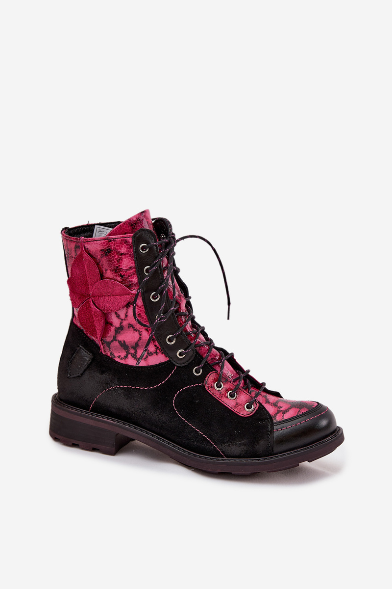 [Kožené dámske čižmy z prírodnej kože s plochou podrážkou Maciejka 07004-23 Čierno-ružové]