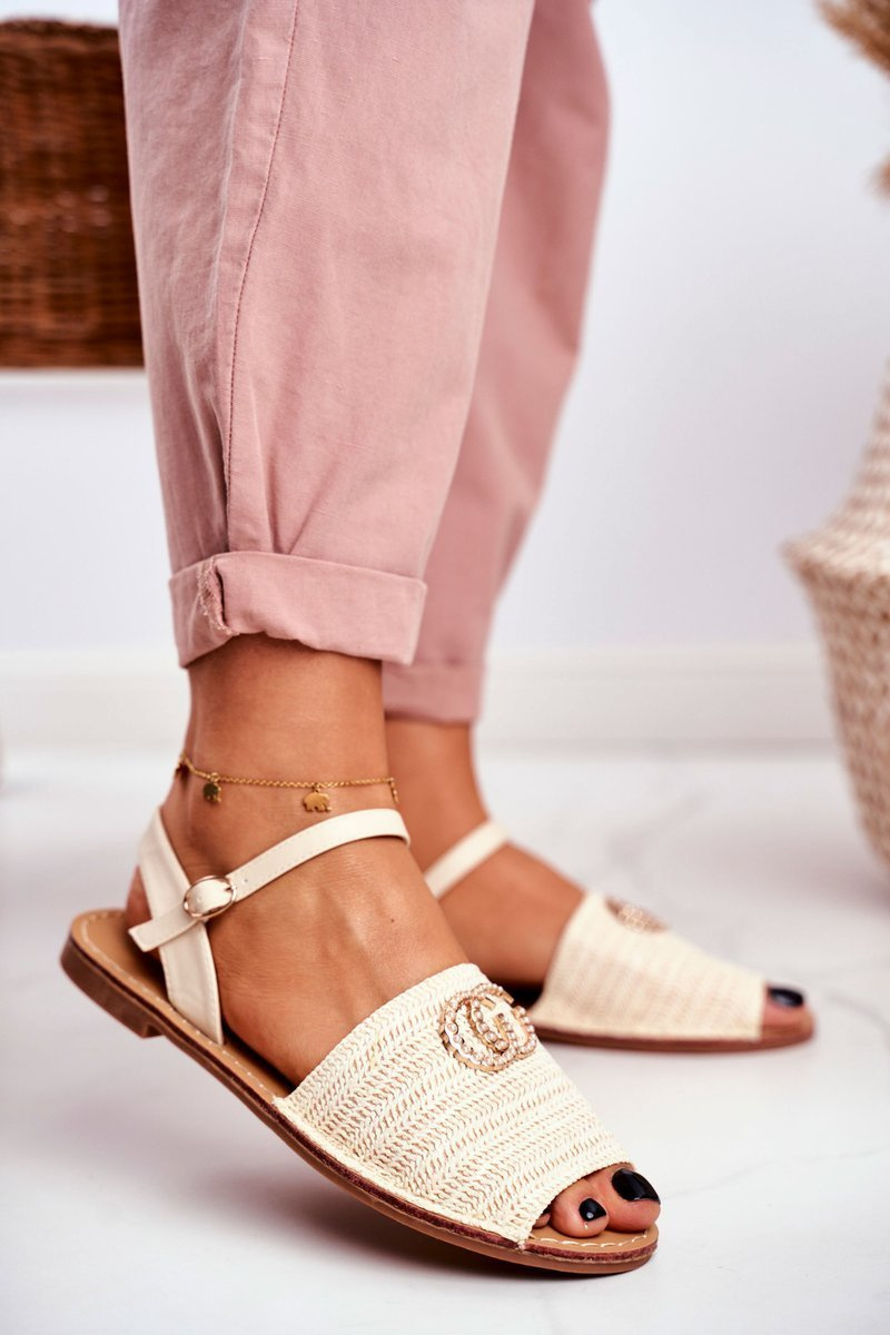 Veľká zbierka moderných ženských sandálov z Lu Boo. Model je zdobený zlatým prvkom s bielymi perlami, čo dáva eleganciu topánok. Mimoriadne pohodlné sandále so zakotvenými plochými, ktoré nemožno chýbať! Horná časť sandálov je pokrytá opleteným materiálom - posledný trend tohto leta! Neváhajte, môže to chýbať!