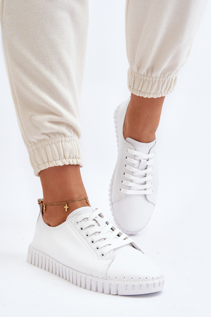 Dámske tenisky vyrobené z vysokej kvality prírodnej kože, čo zaručuje trvanlivosť a pohodlie pri nosení. Ich klasický dizajn umožňuje ľahké doladenie k rôznym štýlom a šnurovanie zabezpečuje isté držanie nohy. Okrem toho majú topánky protišmykovú podrážku, vďaka čomu sú bezpečné a stabilné aj na rôznych druhoch povrchov. Vložka z prírodnej kože zaisťuje dodatočný komfort počas dlhého nosenia. Tento model je absolútny must-have vo vašej kolekcii obuvi! Při výběru velikosti se řiďte tabulkou velikostí.