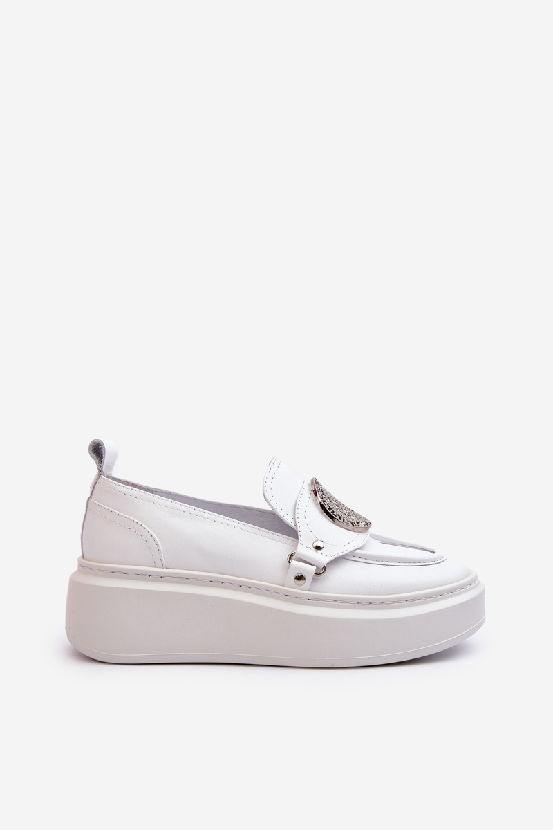 Biela Kožená Mokasíny S Ozdobou Zazoo 3486