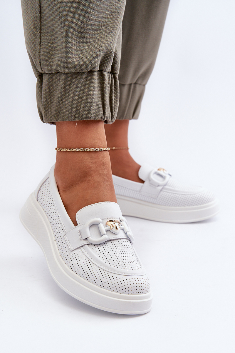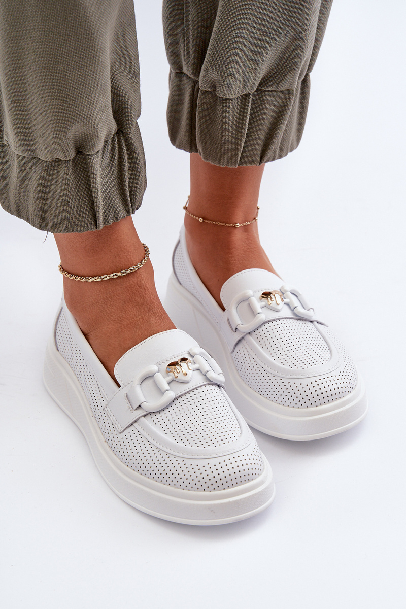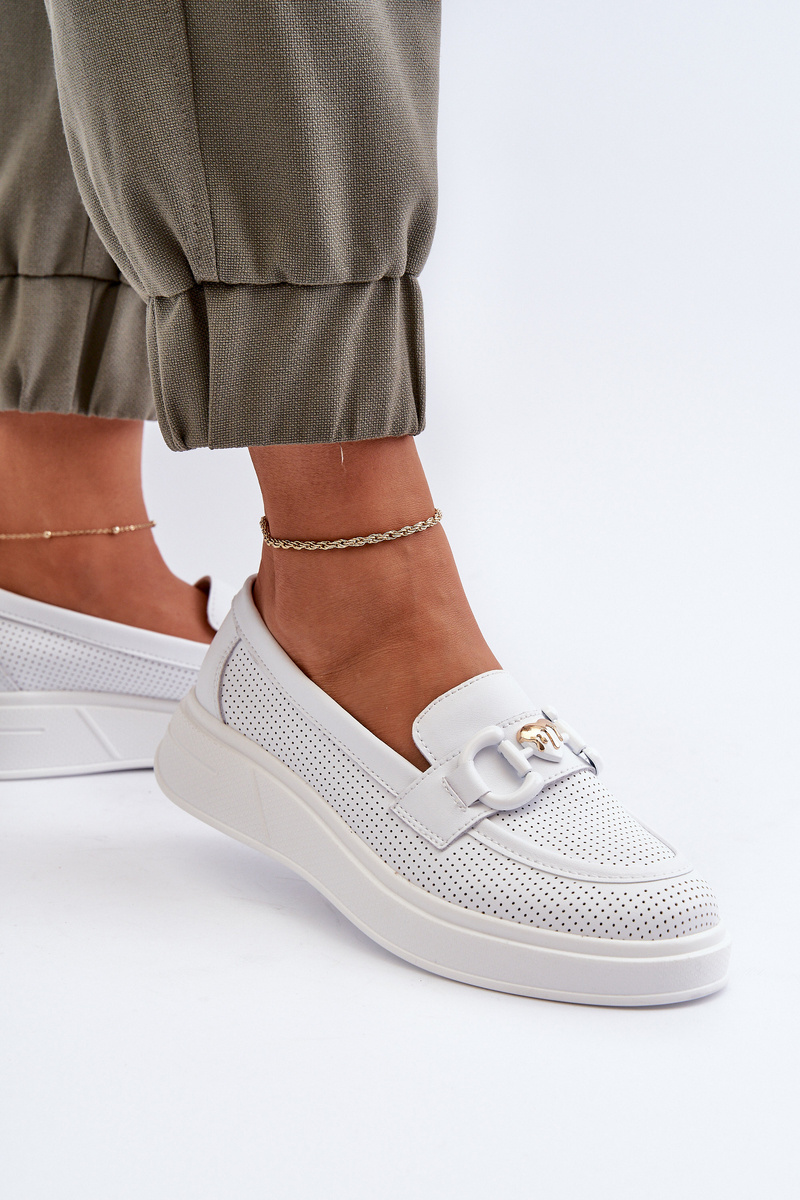 Biele dámske kožené mokasíny na platforme S.Barski LR720